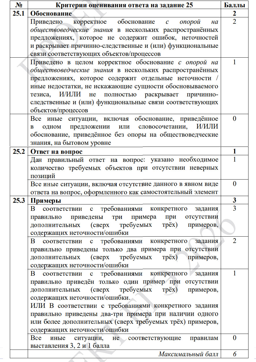 Также ФИПИ дает нам ряд четких критериев оценивания задания №25, за которое можно получить максимум 6 первичных баллов.
